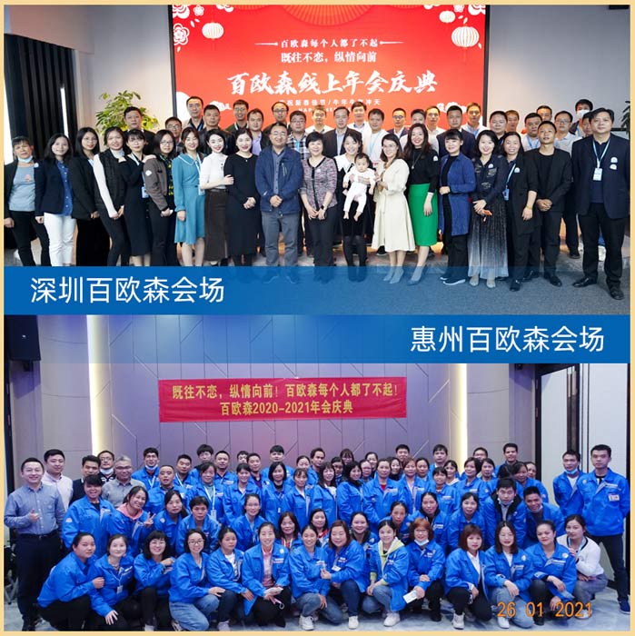 年會(huì)是百歐森一年一度的盛會(huì),為積極響應(yīng)國(guó)家號(hào)召,加強(qiáng)新型冠狀病毒肺炎疫情防控工作,有效減少人員聚集,今年改為線上連線直播模式年會(huì),百歐森總部與惠州分公司及全國(guó)各地辦事處遠(yuǎn)程連線的2020年終盛典在2021年1月26日?qǐng)A滿完成。